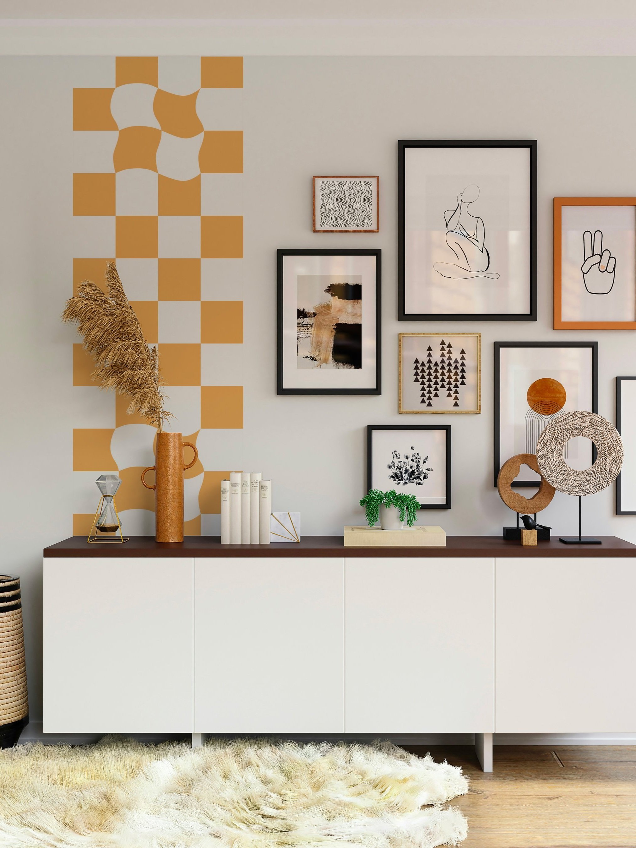 Créer de la profondeur : Un mur d’accent avec un motif géométrique ou un design à grande échelle peut donner une sensation de volume et d’espace supplémentaire.